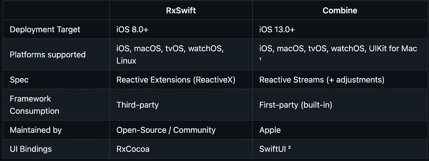 처음 Combine이 나왔을 때는 SwiftUI + Combine, UIKit + RxSwift 로 사용되어 졌는데